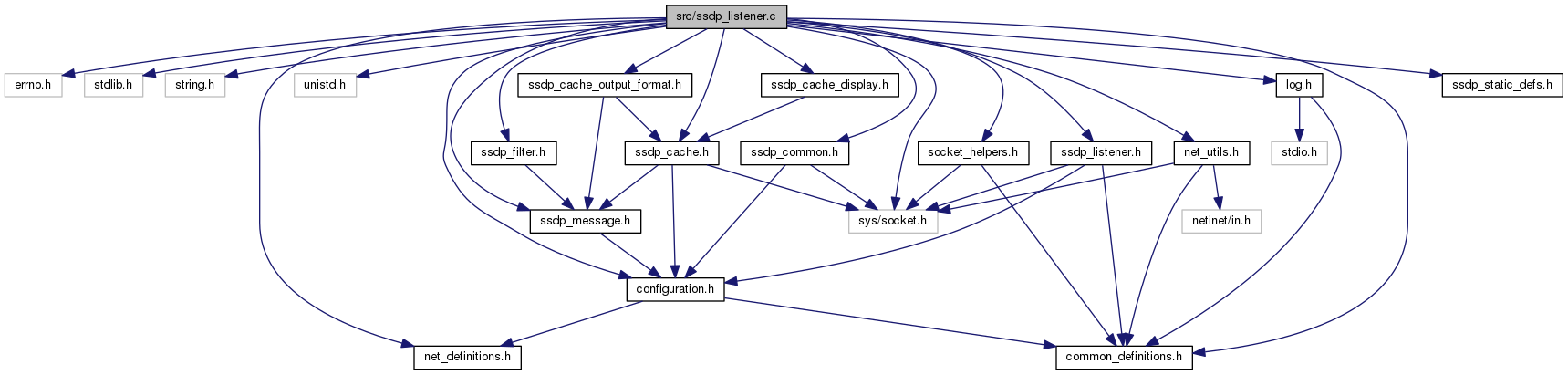 #include <errno.h>#include <stdlib.h>#include <string.h>#include <sys/socket.h>#include <unistd.h>#include "common_definitions.h"#include "configuration.h"#include "log.h"#include "net_definitions.h"#include "net_utils.h"#include "socket_helpers.h"#include "ssdp_filter.h"#include "ssdp_cache.h"#include "ssdp_cache_display.h"#include "ssdp_cache_output_format.h"#include "ssdp_common.h"#include "ssdp_listener.h"#include "ssdp_message.h"#include "ssdp_static_defs.h"