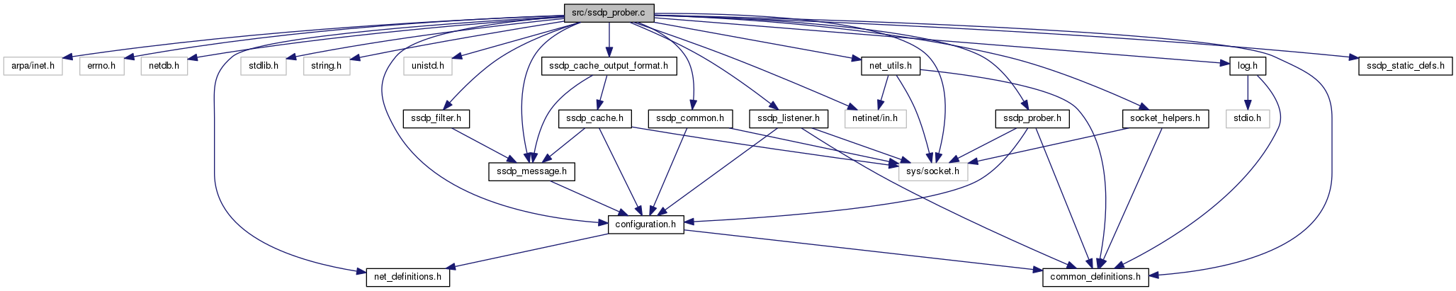 #include <arpa/inet.h>#include <errno.h>#include <netdb.h>#include <netinet/in.h>#include <stdlib.h>#include <string.h>#include <sys/socket.h>#include <unistd.h>#include "common_definitions.h"#include "configuration.h"#include "log.h"#include "net_definitions.h"#include "net_utils.h"#include "socket_helpers.h"#include "ssdp_cache_output_format.h"#include "ssdp_common.h"#include "ssdp_filter.h"#include "ssdp_listener.h"#include "ssdp_message.h"#include "ssdp_prober.h"#include "ssdp_static_defs.h"
